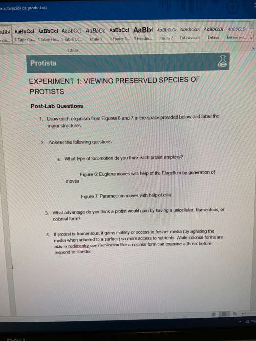 Solved Fuente Parrafo Protista Pre Lab Questions 1 Chegg Com